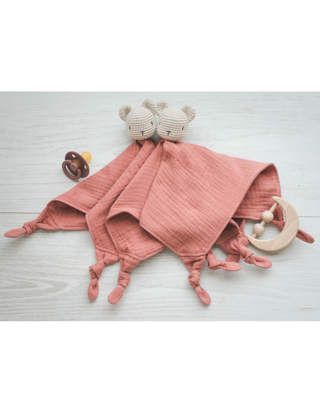 ✔ Doux et sécuritaire : en double gaze de coton pour un maximum de tendresse.