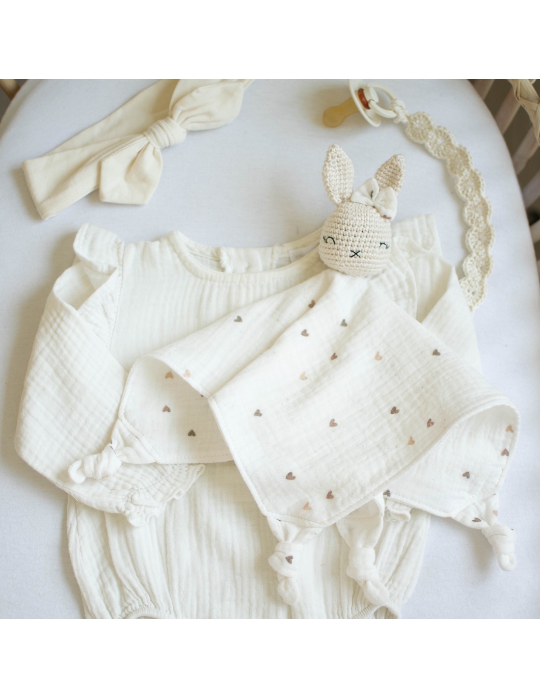 ✔ Doux et sécuritaire : en double gaze de coton pour un maximum de tendresse.