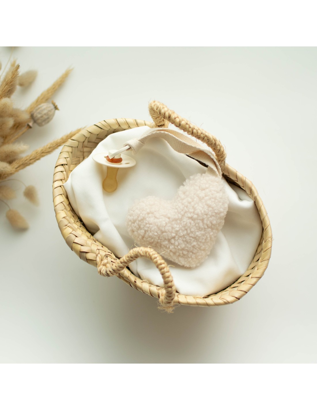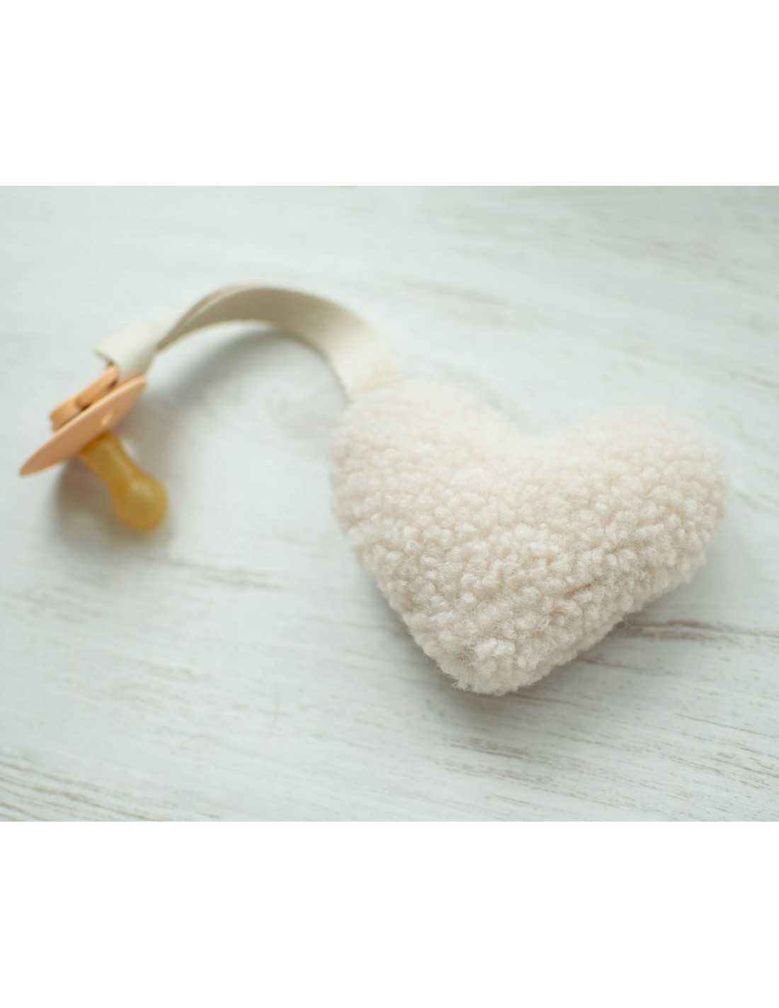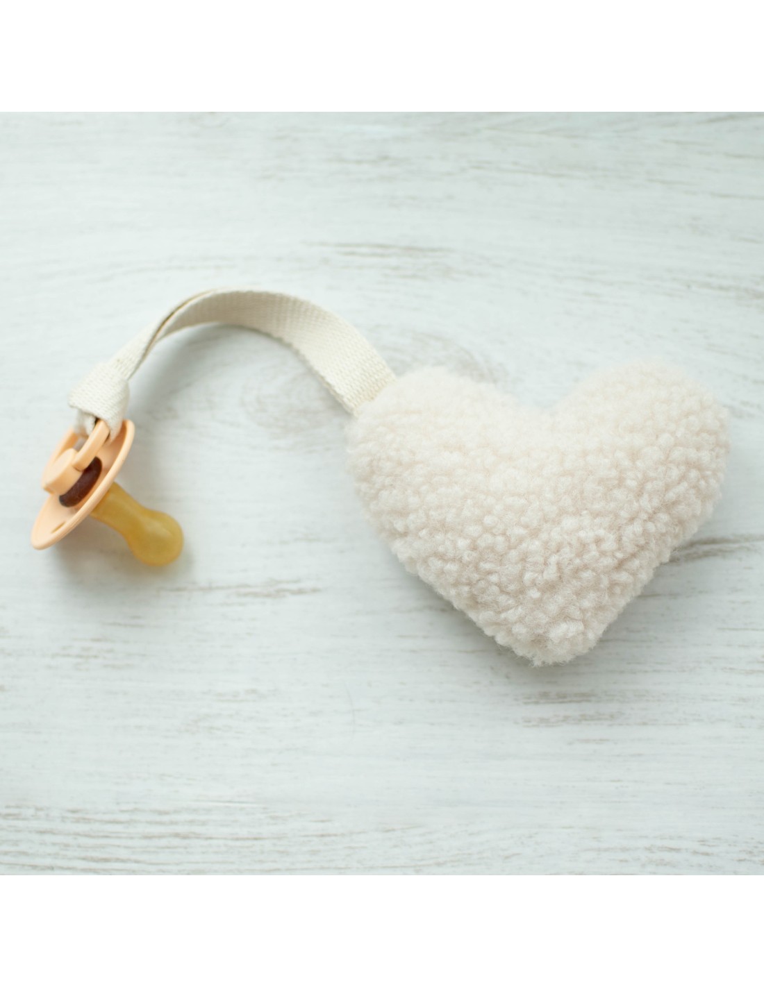 ♥ Cette attache-tétine Coeur en Sherpa est parfait pour éviter de perdre la tétine tout en rassurant bébé à tout moment.